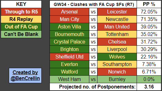 Ben Crellin Di Twitter A Quick Update On The Fixtures That Could Clash With The Fa Cup Sfs In Gw34 These Clashes Wouldn T Definitely Result In Blanks Because The Two Midweeks That