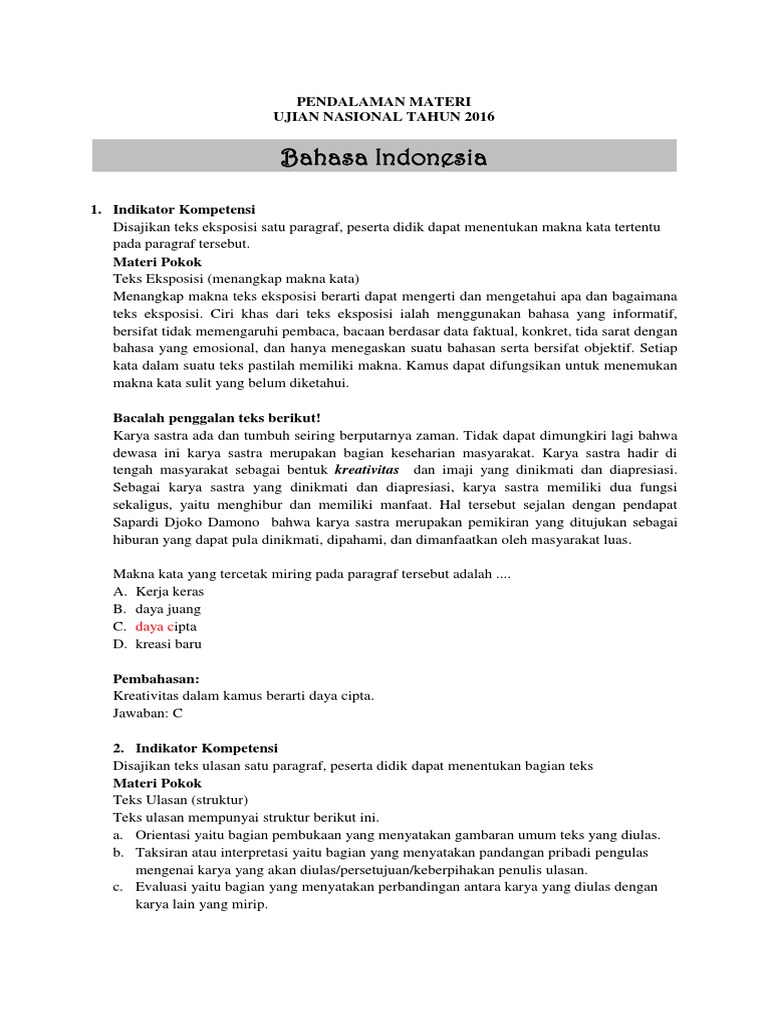 Pembahasan Soal Un Tahun 2016 2017 Bahasa Indonesia Sma Ma Menentukan Makna Istilah Kata Soal Nomor 2 Zuhri Indonesia