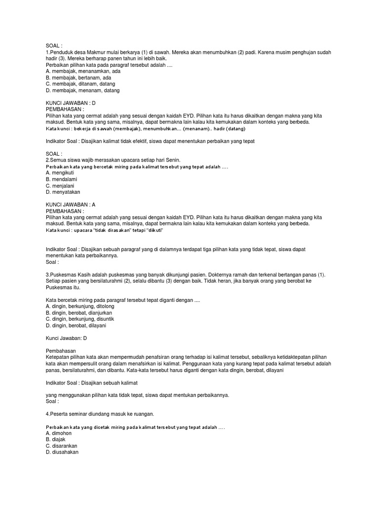 Soal Un 2019 Kunci Jawaban Dan Pembahasan Mapel Bahasa Indonesia Sma Nomor 2 Makna Istilah Zuhri Indonesia